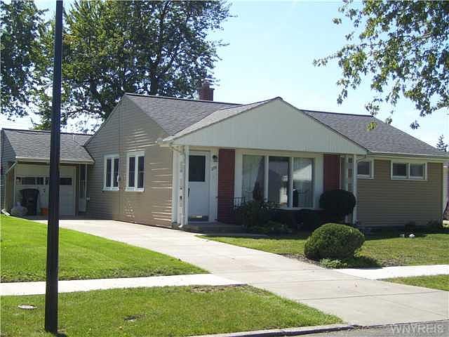 This fabulous ranch offers 3 PLUS bedrooms, one full bath, attached garage with front and back entrance doors. Very large yard and first floor laundry room, eat-in kitchen, large bright living room. Appliances are included and "sold as is". Home offers hardwood floors throughout, vinyl windows 2011, furnace, 2011, roof and gutters 2000, HWT, 2005, concrete driveway 2003, updated electric 2014, sump pump 2014 and new sewer line 2012. Well maintained and move in condition