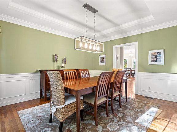 This well maintained colonial sits on an amazing lot and is filled throughout with exceptional details. From the gleaming hardwood floors to the expansive primary suite, this home is both bright and spacious. The two story entry foyer is flanked on the right side by a large home office with both French doors and a coffered ceiling. To the left, the formal dining space is perfect for hosting dinner parties just in time for the holidays. A gas fireplace is the center piece of the graciously sized living room. Quartz counters, maple cabinetry, a built in work station, and newer stainless steel appliances all add up to an exceptional kitchen space. With a large eat-in area, your family and guests will certainly be gathering here. Upstairs, the primary suite is a multiple room oasis with a huge en-suite bath, laundry and additional room currently utilized as a gym. There are 3 more bedrooms and an additional bath on this level. The finished basement is for perfect movies and game nights.