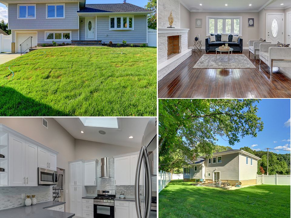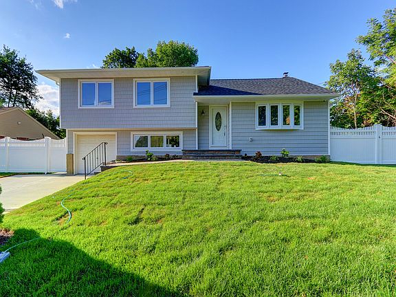 Full Renovated beautiful split in Old Bethpage! This house has 3 large bedrooms and 3 full bathrooms. Modern Eat in Kitchen w/SS appliances, granite counters. New flooring, new windows, new siding! Full finished basement. High-hats, Hardwood floors, Central AC. Sliding door to backyard. Fully fenced backyard with Patio. Attached 1 space garage. Must see!! ***************************************