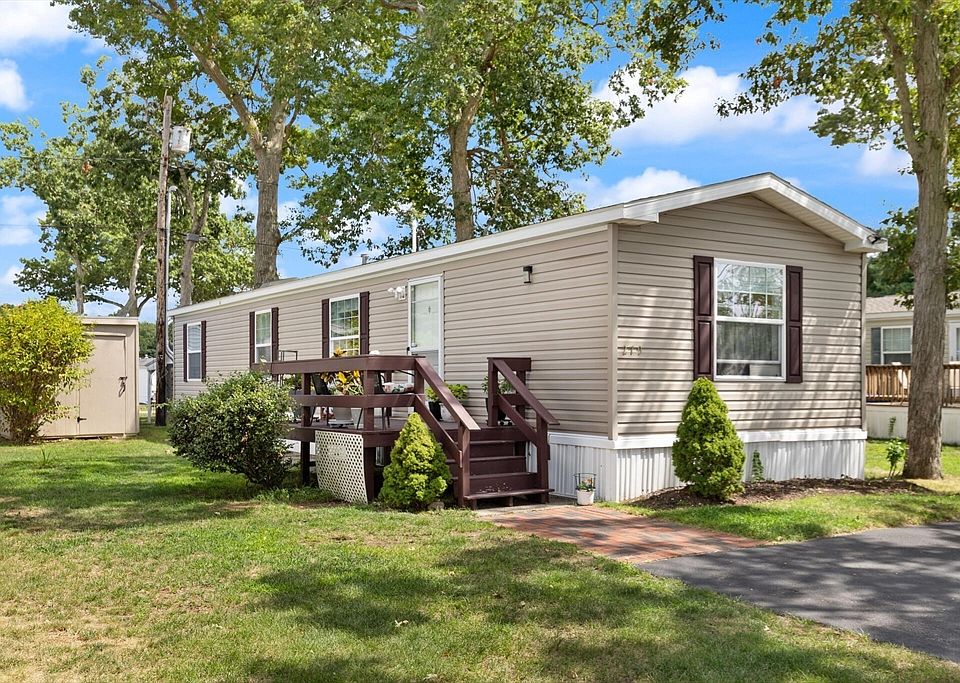 Beautiful!! Updated kitchen & bath, walk into the open and inviting kitchen/living room with newer luxury vinyl flooring.  Primary bedroom is in the back of the home with room for a king sized bed and great closet space.  2nd bedroom for guests or an office.  There is a 12 x 7 deck already for you to relax on and a storage shed for any extra's.  Oak Hill is not an age restricted park ~ great option for first time buyers.