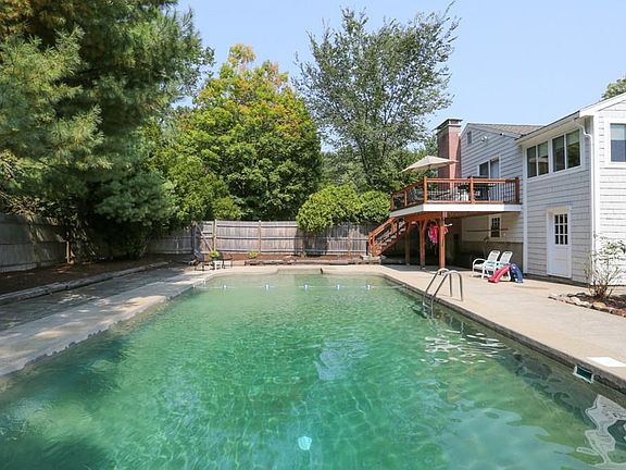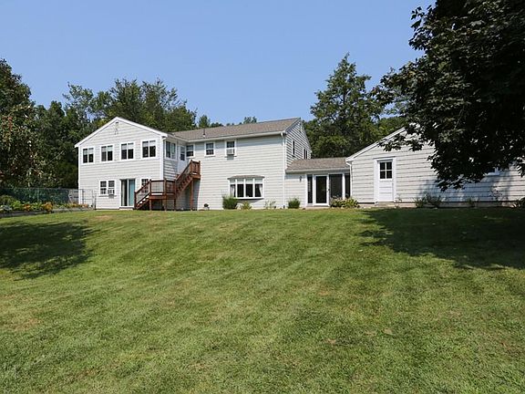 Wow! This contemporary split home is sited to capture abundant natural light and an open floor plan results in comfortable family living. Many improvements throughout including, fresh paint, newer roof, many windows, driveway, energy star boiler & hot water heater, moldings, garage doors, kitchen counters & stainless steel appliances. Fabulous sunroom with vaulted ceilings and views of phenomenal private backyard. Large In-law suite or first floor master with full bath. Large entertainment room for family fun! four bedrooms, three full baths with updates, two fireplaces, dramatic dining room with vaulted ceiling, hardwood floors, eat-in kitchen and vaulted ceiling living room. The outdoor space includes many mature plantings, in-ground pool, stonewalls, circular driveway, decorative lighting and coy pond.