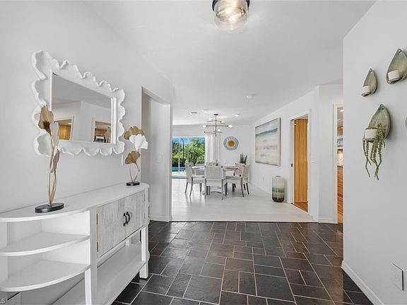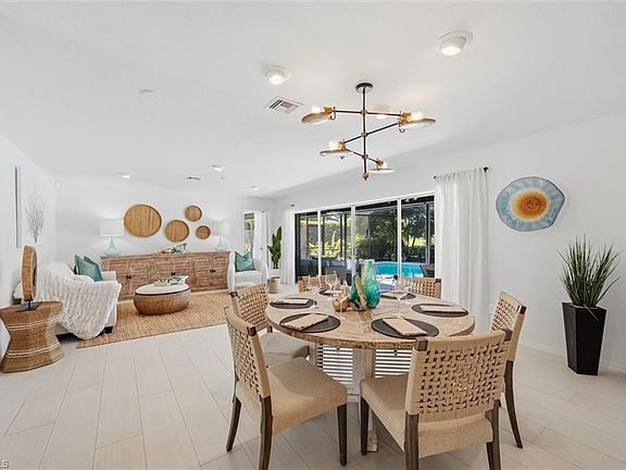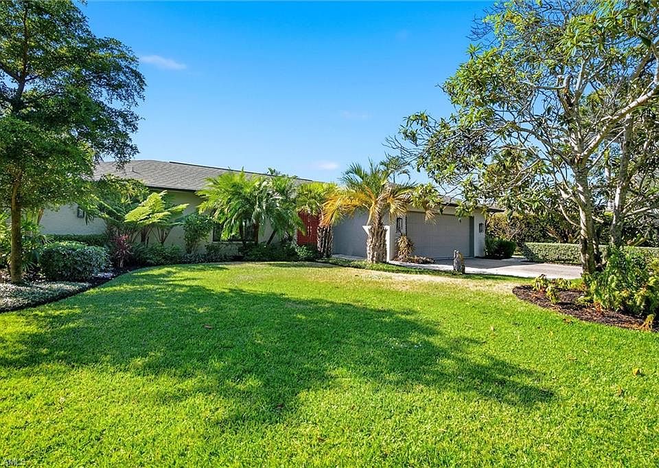 Positioned on one of the most desirable oversized corner lots in Big Cypress Golf and Country Club Community, this updated 3-bedroom, 2-bath pool home offers an exceptional combination of privacy, location, and value in the heart of Naples. Set back from the street with its own private driveway—one of only a few homes in the community with this distinction—the property enjoys a quiet setting, mature landscape design, and open golf course views rarely available in this neighborhood. The interior layout includes formal living and dining areas overlooking the screened pool and lanai, a redesigned kitchen with quartz countertops, custom cabinetry, and high-end stainless steel appliances, plus a comfortable family room. One bedroom functions perfectly as a home office or flex space, ideal for today’s lifestyle. Recent improvements include remodeled bathrooms, upgraded lighting and electrical, impact-resistant windows, a newer roof, and a spacious laundry and pantry area. The large screened lanai—partially covered for outdoor dining and relaxation—creates a private retreat surrounded by lush greenery and long golf course views. Located just around the corner from The Country Club of Naples, Vanderbilt Beach and minutes to downtown. Surrounded by high-end new construction, this property stands out for its privacy, quality, and central Naples address with an optional HOA. Homes with this combination of lot position, design, and condition are rarely available—schedule your private showing today. Professionally staged by K & A Coastal Design—furnishings are available for purchase for a truly turnkey experience.