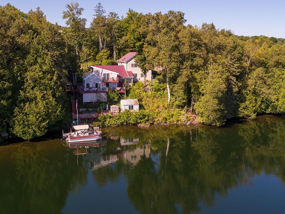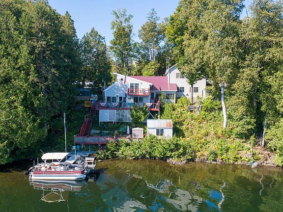MOTIVATED SELLER!!  The dream lakefront home you have been looking for!!  This very unique lake home has everything you need to complete your new lake lifestyle in the summer/winter months. This 2 bedroom, 3 bonus room, 1.5 bath, year round, waterfront home was rebuilt in 1997 and added on in 2012. Granite counters throughout the home. Large windows overlooking the lake with beautiful sunrise & sunsets. Enjoy your morning coffee w/friends and family while listening to the loons from the deck.  Open the front door into the cozy Living Room with Pellet Stove with sliders off to the deck., great place to start the day with a coffee and take in the quiet and nature.  Nice size Bedroom off the Living room and Office Area.  Step up into the Kitchen and Dining area.  Off the Kitchen/Dining Area you can enter enclosed porch were you can overlook the lake. Upstairs an oversized landing, there you can enter the primary bedroom and enjoy the morning sunrise with a cup of coffee on your balcony, and many bonus rooms, that are currently used as bedrooms. This home offers an oversized heated garage where you can enter the home without going outside in Winter Months.  You will notice many stairs to the deck, but there is no need to worry, this home comes with a hoist/elevator to guide you to your final destination. If you like to Ice Fish, you will notice a building along the lake shore, which comes heated with electricity. Watch your tip-ups while sitting by the coffee maker.