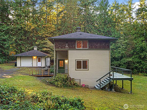 Tucked away in a serene and private wooded neighborhood, this charming two-story home offers the perfect blend of seclusion and comfort, yet is conveniently minutes away from the Town of Friday Harbor. Surrounded by tall cedar trees, and the sounds of nature, this house features a sizeable yard, two bedrooms, and 1 1/2 baths. Inside, the main floor welcomes with a warm and inviting living space including a cozy propane woodstove, functional kitchen, and a convenient half bath. Large windows throughout the home offer lovely forest and peek a boo water views. Upstairs, you'll find both bedrooms and a Jack & Jill full bath. With its quiet setting, thoughtful layout, and intimate size, this home is ideal for anyone seeking a tranquil retreat.