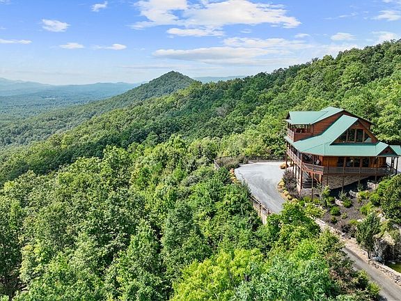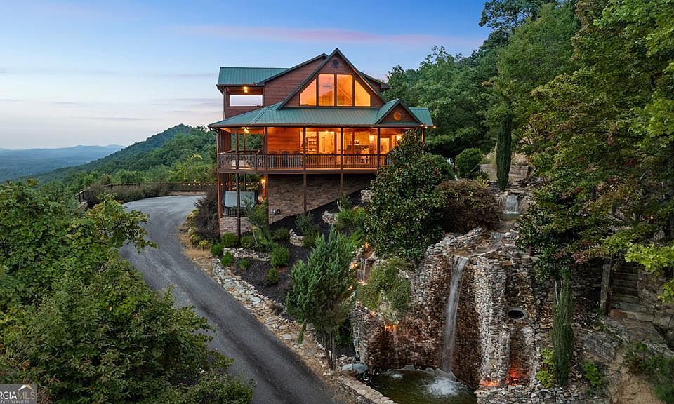 Luxurious mountaintop retreat offering complete PRIVACY and BREATH-TAKING VIEWS! Recently featured on American Dream Home, the Waterfall Lodge boasts panoramic long-range layered mountain views plus the sounds from your very own 25' waterfall for a truly one-of-a-kind mountain experience. Impeccably maintained with absolutely stunning views from every room, this private 4 bedroom mountaintop escape features the primary owner's suite on the main, high-end furnishings and decor, and recently updated finishes throughout. Massive stone fireplace and vaulted ceilings highlight the main living area with terrace level featuring oversized game room with additional family room and bunk room perfect for larger groups. Professionally landscaped and hardscaping with cozy outdoor fire pit area and outdoor spaces designed for entertaining while soaking in the views! Perfect for full-time living, luxury vacation rental, or private weekend getaway, this legacy property is offered turnkey with furnishing included. All paved access, plenty of parking, high-speed internet and backup generator. Waterfall Lodge offers complete serenity in the mountains yet is close enough to enjoy all things Blue Ridge has to offer including shopping, dining, trophy trout fishing, lake Blue Ridge and more!