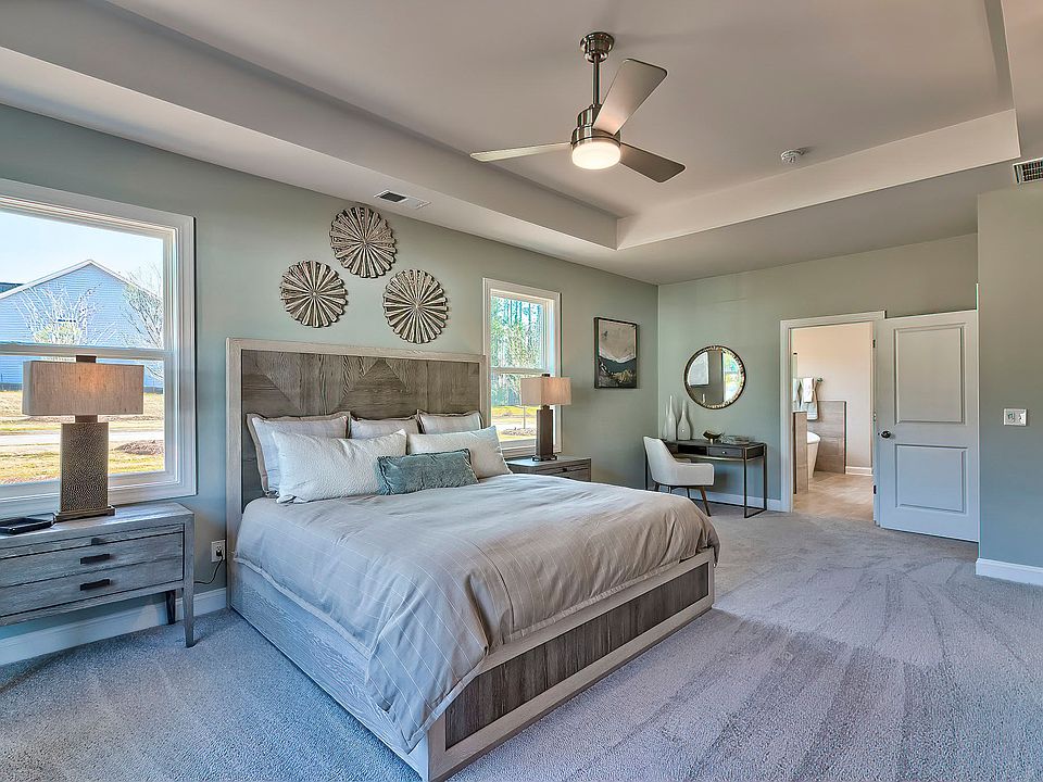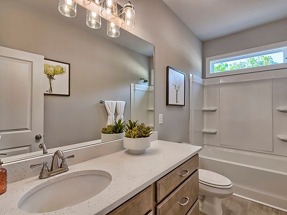The popular Ransford floorplan provides main floor living at its best! This open concept layout, finished with high ceilings in the family room, is perfect for entertaining friends and family. To make entertaining a breeze there is also a formal dining space with butler's pantry for hosting fun dinner parties. The sleek and stylish gourmet kitchen is every chef's dream, complete with a large kitchen island along with designer finishes to include pendant lighting, tile backsplash, stainless steel appliances and more. The primary suite is the ultimate retreat finished with an elegant bathroom with tile floors and a seated tile shower. Step upstairs to enjoy a huge flex room, perfect for any man cave, playroom, or fitness area and an attached bedroom with full bathroom. This home features a lovely sunroom where you can enjoy the views of the common area with plenty of natural surroundings. Photos used are for illustrative purposes only.