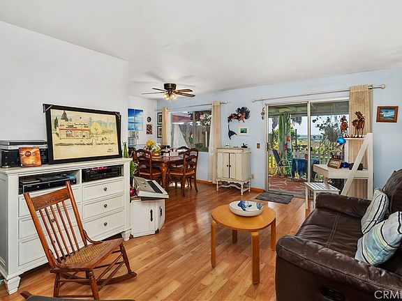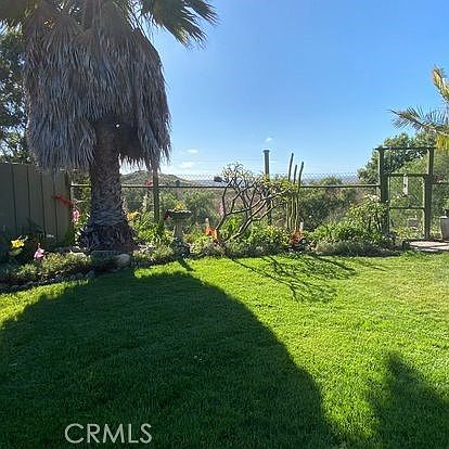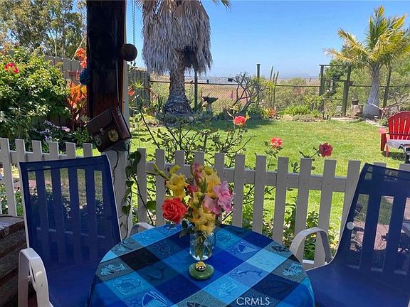 The 1st resident must be 55 & the second can be 45 years old. Nice views featuring a tranquil canyon, refreshing breezes, and lush landscaping with majestic palm trees. An organic lawn, raised brick beds, and greenhouse enclosures are perfect for year-round cultivation of vegetables, herbs, and flowers. Be provided by the new planted orchard including avocado, pear, guava, orange, grapefruit, blueberries, blackberries, strawberries, artichokes,, mint, onions, and a variety of flowers and herbs. The lush lawn, which takes just 10 minutes to trim with the included electric lawnmower, is ideal for a small to medium-sized dog. The spacious covered patio, illuminated by skylights, extends your living space outdoors, with the option to enclose it for added potential. Generously sized bedrooms offer peaceful retreats. An oversized one-car garage provides ample space for a full-sized washer and dryer, along with a substantial workbench/desk, pull-down-stairs-to attic-storage—Additional highlights include a newer large hot water heater, gas range, new floors, fresh paint, and wainscoting trim. A whole-house attic fan keeps the home a perfect climate and the perfect distance from the ocean – 5 miles to enjoy the marine layer that burns off to sun! A very sweet spot on Earth.