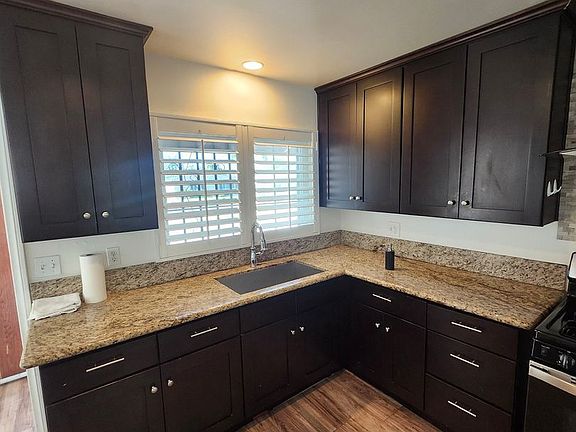 This beautifully remodeled 3-bedroom, 2-bathroom home is filled with upgrades, including recessed lighting, laminate flooring, and cozy carpet in the bedrooms. The open-concept layout features a stylish kitchen with a stove and wine refrigerator, high-end shutters, and a warm fireplace in the living roomperfect for entertaining or relaxing at home. Each bedroom is generously sized and includes its own ceiling fan for year-round comfort.
