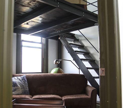 13 ft ceilings with custom designed steel lofts to make this roomy apartment even roomier