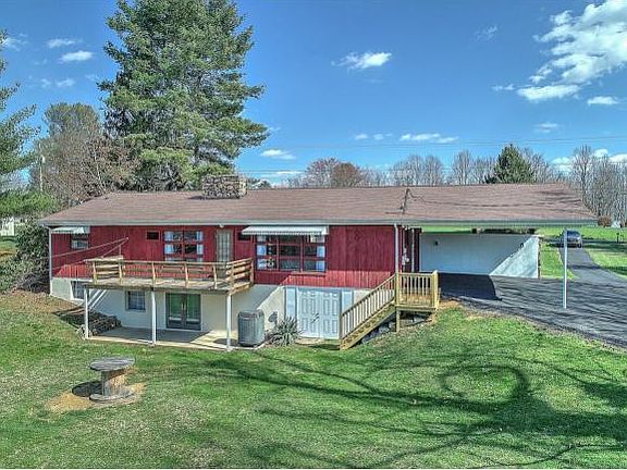 Great Location minutes away from South Holston Lake at Observation Knob and Laurel Marina. Six acres and no city TAXES! The exterior of this Mid-Century Modern home has beautiful stonework, wood siding that has recently stained, newly sealed driveway with a very large level front yard. As you enter the home you will be impressed with the unique sunken living room and the stone wood burning fireplace. Main level has 2 bedrooms, main bathroom with half bathroom off the kitchen in the laundry room. The dining room and a large back deck perfect for entertaining, which overlooks the beautiful meadow view with plenty of wildlife. The lower level downstairs has a third bedroom/den, a second stone wood burning fireplace, other half bathroom and plenty of natural light. There is a walkout to the back yard with a perfect space for a garden area. A truly unique property with much to offer in a private and beautiful setting. Info deemed reliable but not guaranteed. Buyer or buyers agent to verify all information.
