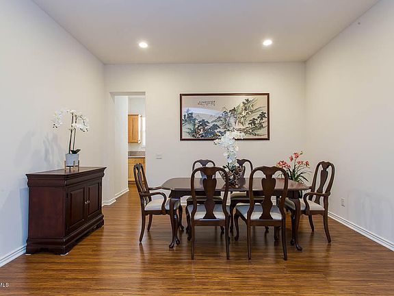 Here is the one story you've been waiting for! Attractive functional floor plan with private master wing and 10' ceilings. Only one owner, this 4 bedroom, 2.5 bathroom home has been impeccably maintained and substantially upgraded with luxury bamboo wood flooring, open and spacious eat in kitchen with porcelain tile flooring, large center island with breakfast bar, granite counters, custom tile back-splash, built in GE Profile stainless steel appliances including microwave, double oven, 5 burner gas cook-top, dishwasher and wine refrigerator. Spacious upgraded master bathroom features gorgeous custom granite spa tub, 2 sink vanities, custom master shower with inlaid tile, large walk-in closet. Separate wing offers 3 additional bedrooms and bathroom. Perfectly manicured and landscaped back yard with covered concrete and brick wood covered patio and large grassy area. 3 Car tandem garage with built in storage cabinets. Dual pane windows, recessed LED lighting. Walking distance to award winning Sycamore Canyon School (K-8), The Village Shopping Center, community parks and community recreation center. Dos Vientos is known for its close proximity to numerous hiking and biking trails.