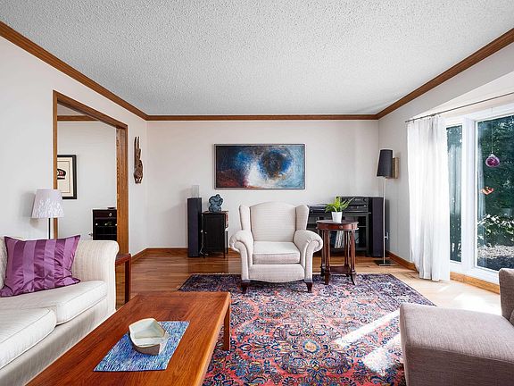 Formal dining areaSeparate family roomWood burning fireplaceBay windowLarge windowsNatural sunlightPrivately located den