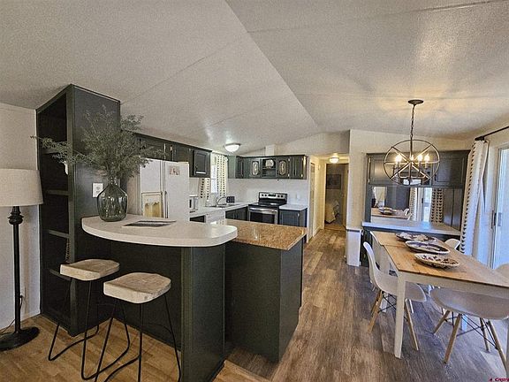 The true affordable housing in Ouray County is right here. This fully furnished, well kept three bedroom, two full bath mobile home as a very nice great room with a spacious kitchen, living room and dining area, is waiting for your family. The back yard is fenced for your four legged family members. With a nice location of two miles south of Ridgway, and eight miles north of Ouray, you can send your kids to either school. The Valley Heights mobile home park is a nice community where the neighbors take care of each other. The lot rent of $645 per month includes water, sewer and trash. This park is an owner occupied only park. No land included, only the mobile home. Come see how nice this place really is.