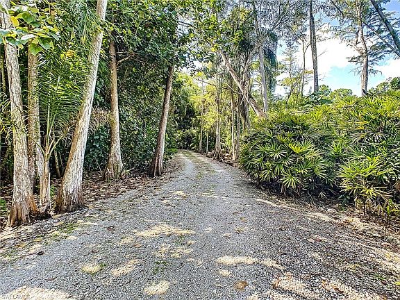 Long winding driveway and ultra private living. 2 story waterfall home with completely fenced and bear proof back yard. Lots of room for storage and to play. So much potential. Home is in excellent shape. Outside bathtub, barn doors, fish pond in 2 story screened in lanai. Must check out the virtual tour. Upstairs has 2 bathrooms and 3 bedrooms, downstairs has a bathroom, laundry room, covered hang out area with barn doors. Room to expand or build a pool. WEST of Everglades blvd close to fabulous schools. Growing area with commercial nearby. Lot backyard has southern exposure. THIS IS NOT IN A FLOOD ZONE. Flood zone X requires NO flood insurance.