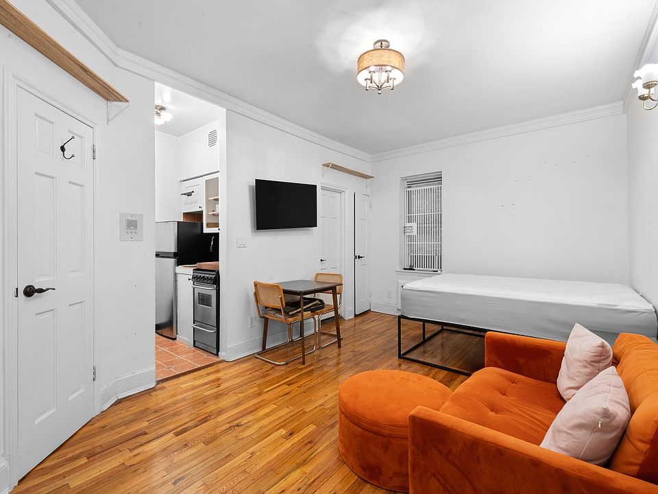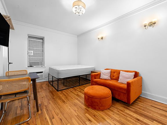 Don't miss this bright and renovated studio available for rent in an elevator co-op. The unit features a separate kitchen with white cabinetry, hardwood floors, marble bath, two large closets, and a through-wall AC unit.