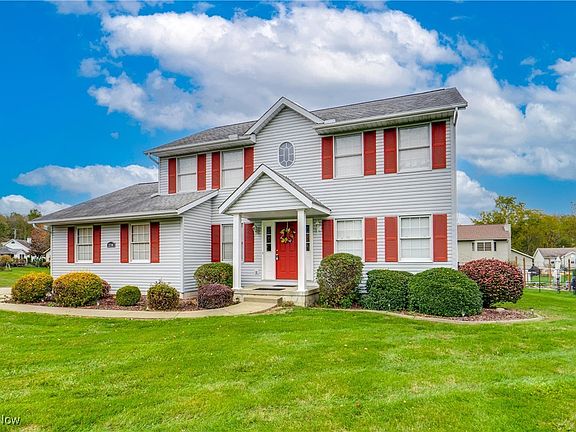 Spacious and updated throughout, this Massillon classic colonial is move-in ready and it shines. Measuring at over 2,000 square feet, this 1996 built home is placed on a .28 acre corner lot. The eat-in kitchen is bright with white cabinetry, updated countertops, a wine rack, and all appliances to remain. The adjacent family room has updated carpet and French doors to the deck and backyard. For formal events, you will love having the formal dining room and front living room for more space.  You will find all three bedrooms on the second floor including the nicely sized owner's ensuite with a walk-in shower, jetted tub, and walk-in closet. The other two bedrooms each have a double closet for extra storage. The bonus is the second floor laundry space with the washer and dryer included making it super ideal and convenient. The lower level has a finished room which would work as a 4th bedroom or office space and features a double closet. There is plenty of shelving in the lower level for all of your boxes and extra items. Should you decide to finish more of the lower level then you will love having it already pre-plumbed for a bathroom. The exterior provides you with a great sized deck with built-in seating. Plus, a shed in the backyard for your outdoor tools. Plenty of room for parking with the 2-car attached garage and a driveway to accommodate another 6 cars if needed. The home sits at the entry to a cul-de-sac in a great neighborhood. Let's make this your new home!