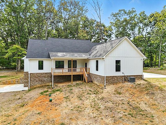 Priced well below tax appraisal, this Well built 3 bedroom, 2.5 bath rancher is situated on 5 acres that roll to the lake. This country rancher offers a split bedroom design with primary bedroom with walk in closet, 2 vanities, soaker tub and tiled shower. Island in kitchen for extra meal preparation. Room for small table and also a formal dining room off of the spacious great room. 2 additional bedrooms with jack and Jill bath. Carpet, tile and lvp flooring. Covered front porch perfect for rocking chairs and covered back deck for relaxing or entertaining. 2 car oversized garage on main and additional 2 car in full, unfinished basement with lower driveway. Home is completely finished and ready to move in. Builder providing a one year builders warranty at closing. Beautiful landscaping and path cut out down to the lake. Home was started in late 2024 but just now completely finished. Mild restrictions. Builder working on clearing even more of a path down to the lake.