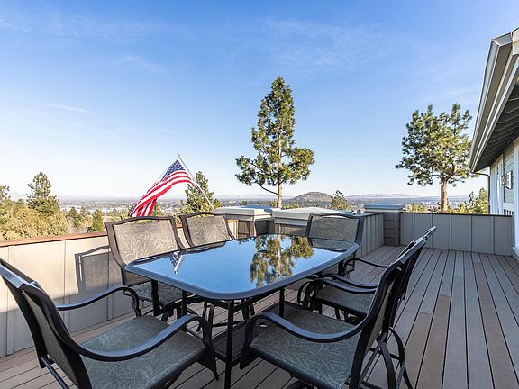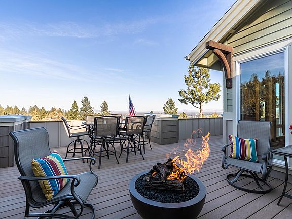 Perched above Bend, this contemporary craftsman home welcomes you with stunning easterly views and a front row seat to fireworks on the 4th of July. The completely updated gourmet kitchen includes marble countertops, new Kitchen Aid appliances and a Wolf range accented by under cabinet lighting. Both kitchen and great room are light-filled and accented with vaulted ceilings. French doors welcome you to the primary suite with new fireplace addition and hickory hardwood flooring. Primary bath has new solid surface countertops and more. The entire home features new interior paint, new counter tops, new window coverings, new windows and additional areas of new hardwood flooring. Downstairs you'll find a flexible bonus room and separate work out area. The 3-car garage is a dream come true with the addition of a gas stove in the work bench area, all new cabinetry, fresh doors and windows. The new paver walkway welcomes guests and the new fire pit sets the stage for entertaining.