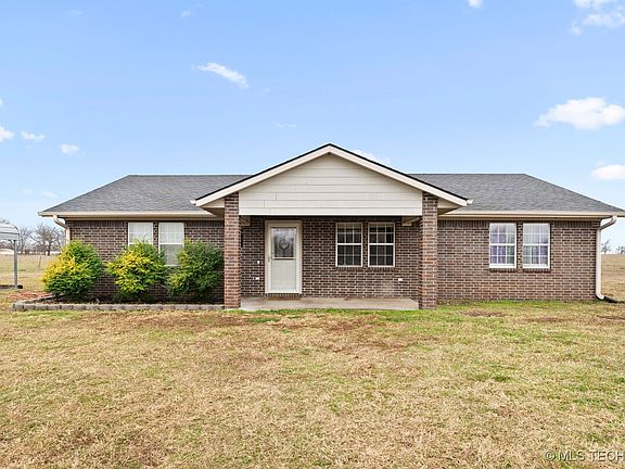 The property is situated on a 2-acre lot in East Pryor, OK, along the historic Old Highway 20. It features a charming brick home with classic guttering, providing both durability and aesthetic appeal. The home offers a welcoming atmosphere with a vaulted ceiling in the living room, enhancing the sense of space and openness with a nice-sized eat-in kitchen with a dining area. Inside, you'll find three cozy bedrooms, perfect for family living, and two bathrooms that provide ample functionality and comfort, The land allows for versatility in outdoor activities and is ideal for those with a love for animals. Horses and chickens are permitted, making it an excellent fit for a small farm or hobby ranch. There is an existing animal shelter specifically designed for housing horses, ensuring your animals have a safe and comfortable space. Overall, this property combines rural charm with modern convenience, offering both a comfortable home and plenty of room for your animals to roam. Schedule your showing today!