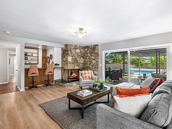 Experience the elevated lifestyle you've been searching for at this exceptional mid-century residence in beautiful southeast Pasadena. Set on a peaceful tree-lined cul-de-sac, the home is introduced by double doors that dramatically reveal the newly refreshed modern interiors. Awash in sunlight, the expansive floor plan is comfortable and elegant while incorporating many superb features, including hardwood floors, newer PEX plumbing and HVAC air conditioning unit, and abundant dual pane windows that showcase the surrounding natural splendor. For sophisticated entertaining, the gracious living room offers lovely mountain views, while the inviting family room boasts a handsome stone fireplace, bar, and sliding glass doors that bring the outside in. You'll enjoy countless happy moments cooking and relaxing with family and friends in the generous kitchen, fitted with fine wood cabinetry, endless counter space, and a cozy dining area. The serene owner's suite, one of 4 bright and spacious bedrooms, has delightful pool views, a custom walk-in closet, and a lavish ensuite bathroom. The serenity continues in the backyard, where lush plantings, fruit trees, and a shimmering pool make every day feel like a vacation! Host a glamorous pool party framed by the pergola-topped deck and multiple dining and seating areas, or immerse yourself in the tranquility of your own private haven. However you choose to live, relax, and entertain, there's no doubt you'll find your key to the good life here at 2790 Thorndike Road.