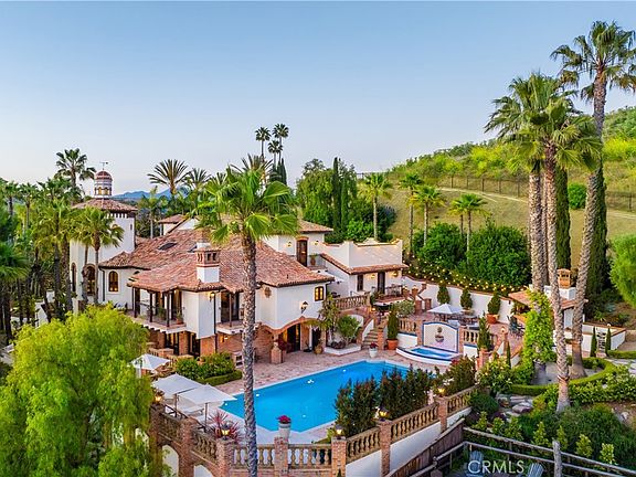 This majestic Spanish Colonial Hacienda-style estate, "VILLA VISTA," perched in the hills of San Juan Capistrano, captures the essence of luxury, privacy and serenity and presents a masterpiece in design and architectural detail on nearly 1.5 acres. Elegant and grand, this spectacular home is designed for entertaining a crowd or relaxing in this secluded sanctuary with privacy, views of the hills, golf course and twinkling lights of the city. Enter this hidden showplace through gates which lead you to an expansive curved driveway and to a circular motor court with a large center fountain while surrounded by over 100 palm trees. The timeless architectural elements set the stage for this romantic and classic VILLA recently remodeled with a modern and contemporary flair. A hand-carved arched entry door greets you and the dazzling double rotunda entry brings you to a dramatic living room with arched windows, massive stone fireplace, mahogany floors and soaring ceilings. The Living Room opens to a view patio complete with Cantera stone balustrades while the nearby formal Dining Room spotlights a coffered brick ceiling and beveled glass French doors open to a cozy patio. Complete with a 72" commercial style refrigerator and 60" Thermador gas range, this spacious new Chef's Kitchen includes a wine bar and Breakfast area with French Doors to the "Kitchen Garden." In addition, the main level includes an all new Powder Room plus 3 luxurious ensuite guest Bedroom suites each with balconies. The sweeping staircase with new iron railings leads you to the Library/office and to the spacious Primary Suite with a cozy Sitting Room, 4 balconies and an all-new lavish Bath. Highlighting the fun and festive way of living, the downstairs boast the ultimate for gracious entertaining featuring a large Family Room with sit-down bar, balcony and fireplace, Game Room, Hobby/Craft Room, Wine Tasting Room and Wine Cellar, all new Bath and large Laundry Room. French doors open to the massive sport's Pool and Spa and to the outdoor "Cantina" Kitchen with dual BBQ's, sink, and refrigerator...all with panoramic views, alfresco dining and a large grassy area. This spectacular estate property includes a total of 4 Bedrooms, 5.5 Baths, story book balconies, and a total of 5 car garage spaces with RV Garage. Enjoy the enchanting natural beauty and quiet elegance blended with the colorful charm of old and new offering resort-style living all year around in this hidden treasure, "VILLA VISTA."