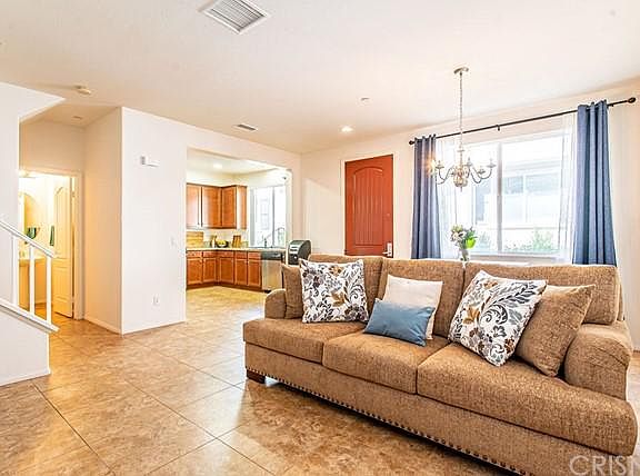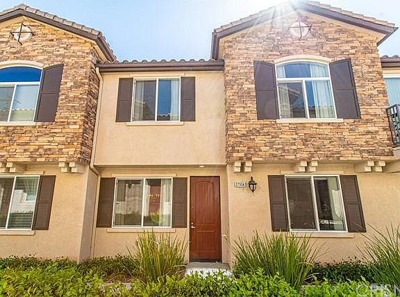 Welcome Home!!!! This exceptional two-story townhome is situated in one of the MOST DESIRABLE locations in the highly sought-after Solstice South community. Built in 2010, this spacious and immaculate property boasts 3 large bedrooms and 2.5 bathrooms, with several builder upgrades. Enter on the ground level to an OPEN CONCEPT living room and dining area with high ceilings and recessed lighting. With nice big windows, the large kitchen receives plenty of natural light and features upgraded granite counters with tons of counter space, gorgeous shaker cabinets, a large pantry and stainless steel appliances. The entire downstairs features upgraded large format tiles throughout and has a half bath convenient for guests. As you walk upstairs, you are presented with an open landing area along with the guest bath and two oversized guest bedrooms. The entire upstairs also features upgraded carpet. A quick right turn and you enter the airy master suite, which provides direct access to a large private balcony with sweeping mountain views. This unit is located in the final building of the community, and therefore, is one of the only units with such a grand view! Washer and dryer hookups are located in the attached 2 car garage, which includes upgraded cabinets located over the laundry area. The community shows pride of ownership with well-maintained and beautifully landscaped walkways, community grounds, front yards, pool and spa. Located within walking distance of the brand new Canyon Country Community Center (a 9-acre site featuring a 25,000 sq. ft. recreation center and a variety of outdoor spaces and activities), it offers easy access to shopping centers, schools, parks, trails, restaurants and the 14 freeway. LOW HOA and NO MELLO-ROOS. Dont miss this rare opportunity to make this gem YOUR HOME!