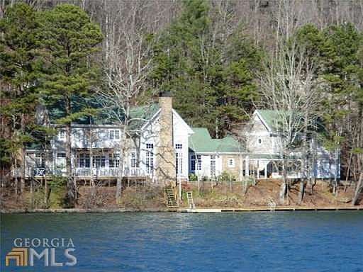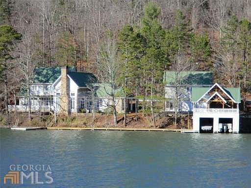 Rare find-professionally decorated-no need to buy a thing.Turn key opportunity.The furnishings are lovely and were chosen with care by one of Atlantas top designers. Beautiful personal touches inlude 1996 Olympic banner. GREAT views.Southern exposure gives BEST use of lake all day. Sunrise and sunset, bu tneither hits the house full on. House is as close to the water level as a house can be on Lake Burton. Almost level walk into the top of the boat house. LONG boardwalk and large swim dock area. Garden house AND play house. 2 car garage has 1 bedroom/1 bath guest suite with private sun porch. Gargage can be converted into family or game room. Covered breezeway connects to house. No sign.