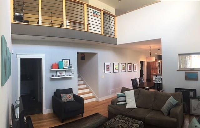 Contemporary design with soaring ceilings and natural light. Cozy family room with built in book cases and gas fireplace. Slate and oak hardwood floors, open floor plan, abundance of natural light. Located close to parks, ponds, walking trails and shopping. !