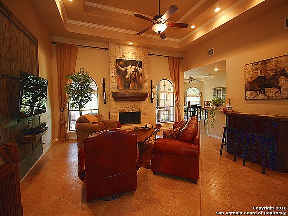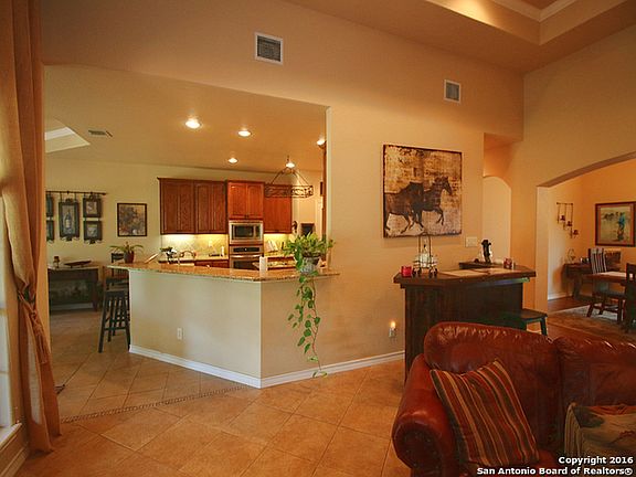 Great one story home on 1.7 acres in River Crossing. Spacious open living area with high ceilings and rock fireplace. Island kitchen w/granite. Large master suite. Breakfast room and separate dining room. Large office/study. Wonderful outside entertainment area with covered patio, cooking area, gazebo and beautiful oak trees. House backs to the east for cool evenings on the patio. Central Vac. River Crossing offers private park on the Guadalupe River. Lease purchase considered