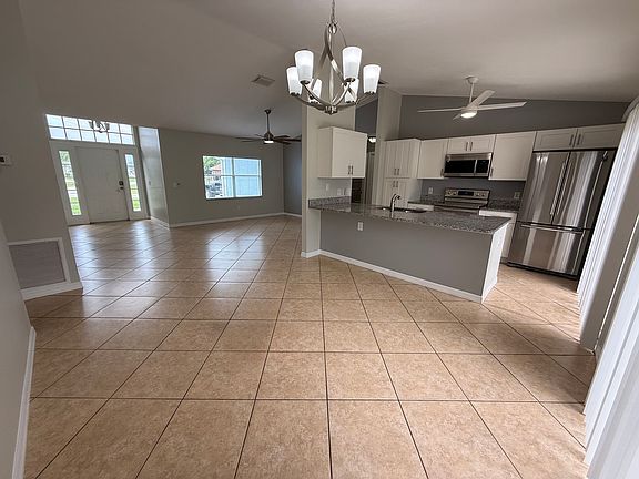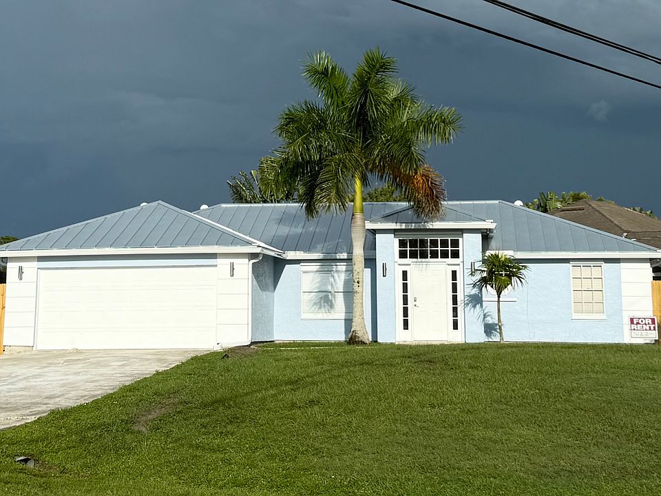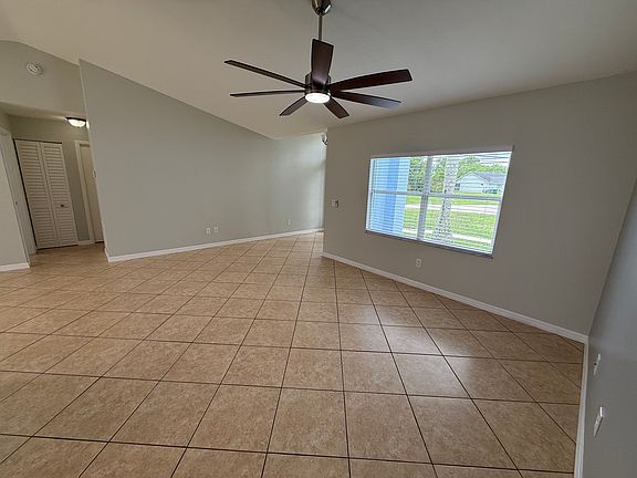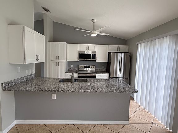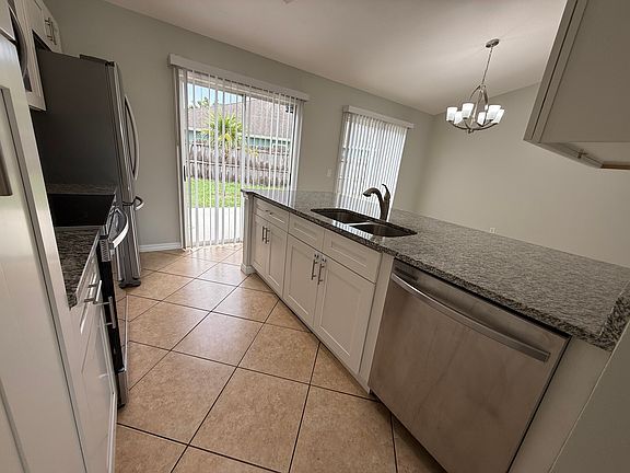 Waterfront corner lot next to lake by the Florida turnpike with its own dead end road. Highly desired 3 bedroom, 2 bathroom, 2 car garage house located on at the end of a cul-de-sac. Completely fenced in backyard to accommodate small or large dogs but sorry, no cats. Quiet community with a family atmosphere and an open sky view with beautiful sunsets. Great school district. Less than 10 minutes to I-95. New tile floors, new roof, new gutters, fresh paint throughout inside and out. Updated stainless steel kitchen appliances. New cabinets and countertops. New driveway extension to allow for boat, trailer and/or RV parking. Lawn care, waste & recycling pick up and water utilities are included in the rent price.