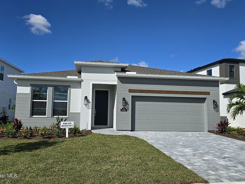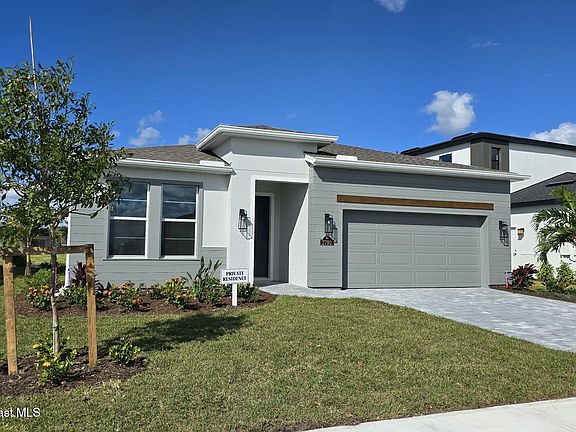 2025 Viera Built home in Crossmolina community with plenty space for a pool. This modern 3-bedroom, 3-bathroom residence includes a dedicated flex room/office, & tiles throughout. The bright, open floor plan flows seamlessly, highlighting a stunning kitchen complete w/quartz countertops, upgraded hardware, a large walk-in pantry, and a café area. The great room is illuminated by 6 recessed wafer LED fixtures. Retreat to the spacious main bedroom, which features an oversized walk-in closet. Built with peace of mind, the home boasts impact-resistant windows, full smart-home features, transferable 2-year builder plus 10-year structural warranty. As an owner in Crossmolina, you'll have access to a future community clubhouse and pool. You also have the option (not required!) to join the amenities at Addison Village. The home's prime location puts you just minutes from the new Publix & Costco, as well as The Avenue shops, dog parks, the Brevard Zoo, and a variety of dining & golfing options For travel and day trips, it's less than one hour to Orlando and about 30 minutes to Port Canaveral.