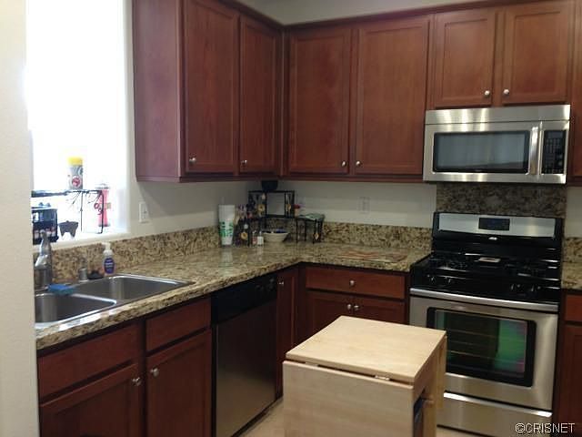 This Beautiful Two Bedroom, Two Bathroom Condominium is located in a newer area of Canyon Country. It features an open floor plan with an attached two car garage. The kitchen and both bathrooms feature granite countertops and lovely dark wood cabinets. This is an end unit with only one common wall and it is the last complex in the development, putting it closest to the great pool area. The master bedroom has a nice outside patio area attached and a large walk in closet. There is a separate dining area off of the kitchen. This home is ready to go now!! Bring us a buyer and let's get this home into escrow!! FHA Approved!!!