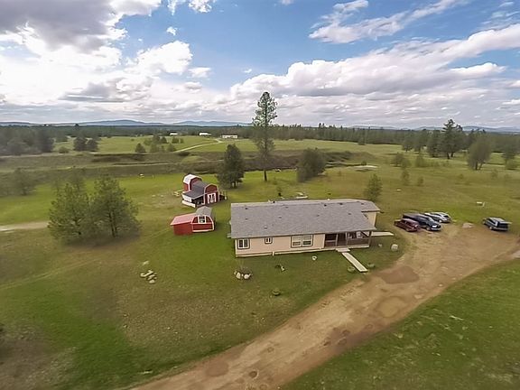 Home on the Range where you play everyday! Enjoy magnificent views of Mt Spokane on this 10+/- acre plateau featuring a customized factory built 3 bedroom home with incredible natural wood work throughout. Years of effort went into creating the perfect cabin-style décor. Details include knotty pine, old-fashioned wood stove, fully appointed kitchen w/ island & double ovens. Great room floor plan w/ views from every window. 2 covered porches, 3 barn-sheds & a real rifle range complete this country paradise.