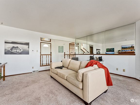 Experience the allure of Puget Sound from this 3-bed, 2.25-bath gem! Built in 1988, The dynamic floor plan boasts high windows, abundant natural light, and all bedrooms conveniently located on the same level. The primary bedroom with its own suite offers breathtaking views. The main floor features a spacious yet dated kitchen, a large living area, and a dining room with access to the upper deck. The high-ceilinged, 840 sq ft unfinished basement is a blank canvas—just add sheetrock and flooring for instant equity. Nestled in a fantastic neighborhood with close proximity to commuting options. It's your chance to flip or transform it into your dream haven – upgrade and fall in love with living here!