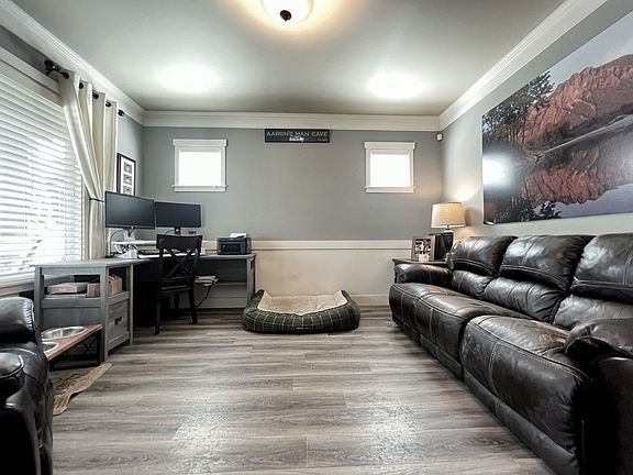 This stunning 4 bedroom, 3 bathroom residence offers the perfect blend of comfort, style, and functionality. As you step inside, you'll be greeted by the warmth and ambiance of a gas fireplace, perfect for cozying up on chilly evenings. The spacious interior features a generous layout, complete with a 5th spare room downstairs, ideal for a home office, playroom, or guest suite and a full bathroom! The beautifully appointed kitchen flows seamlessly into the dining and living areas, making entertaining a breeze. Step outside to the covered backyard patio, where you can relax and unwind in the fully fenced yard. Additional features include a convenient 2-car garage and the added comfort of air conditioning.