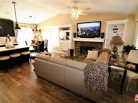ONE OF A KIND and ABSOLUTELY STUNNING just begins to describe the home with the white picket fence we call Cottage Rose! Located in the highly desired Mountain View neighborhood; NO MELLO-ROOS. Enter the exquisite, colorful garden through a rose-laced arbor and experience soothing sounds of the 3-tier fountain. Stepping into Cottage Rose you will find, with no expense spared, a fully renovated home with wood plank porcelain tile throughout. The great room boasts features including a wine fridge, stone fireplace, built-in cabinetry and a mirrored armoire. Sophisticated kitchen design with Carrera quartz countertops featuring a large island with bar seating. Master incorporates unique shiplap feature-wall. Open the French-doors to a sparkling pool with an exclusive view of the Valencia Valley. ****Amenities: Solar, Energy Efficient Windows, Wide-Blade Plantation Shutters, Interior In-Ceiling & Outdoor Spkrs, Recessed LED Lighting, A/C Garage with Custom Cabinets & Work Bench, New Roof.