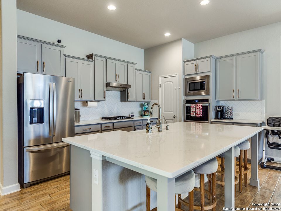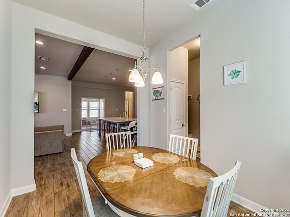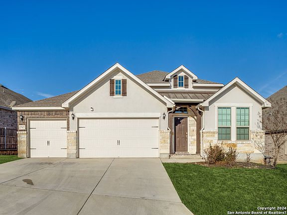 Step into a bright and modern home located in the Cielo Ranch/Bluffs of Lost Creek subdivision of Boerne, Texas, just northwest of San Antonio off I-10. This 4-bedroom, 3-bathroom house boasts a large kitchen with a grand island and bar seating, perfect for entertaining. The living room and kitchen combo features wood beams on the ceiling, adding a touch of elegance. Right off the living room, you'll find a flex room that's ideal for an office or play area. The primary bedroom offers a lavish en-suite bathroom with a soaking tub and large shower. Outside, the covered backyard patio and ample grassy area await your personal touch to create an outdoor paradise. This home combines modern living with the tranquility of the Texas Hill Country.