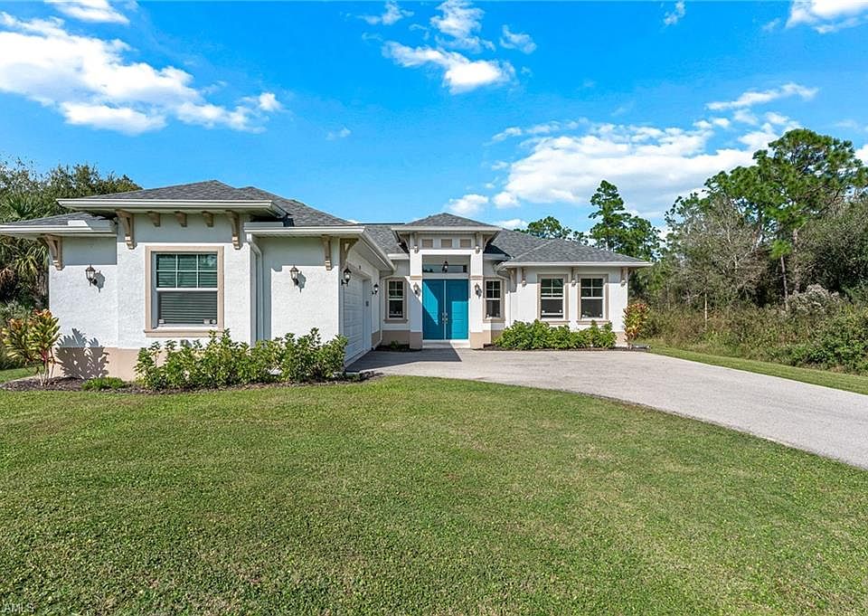 Beautiful and spacious 3-bedroom plus den (or optional 4 bedroom) home! This property features elegant 24" tile throughout, stunning quartz countertops in both the kitchen and bathrooms, and sleek stainless steel appliances. Enjoy high-volume ceilings, 8' interior and exterior doors, and impact-resistant windows and doors for peace of mind. The garage, lanai and front porch all boast professionally finished epoxy flooring adding durability and style. Located in a fantastic area just minutes from Immokalee Road, offering convenience to shopping, dining and more!