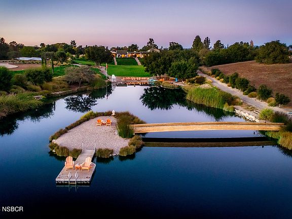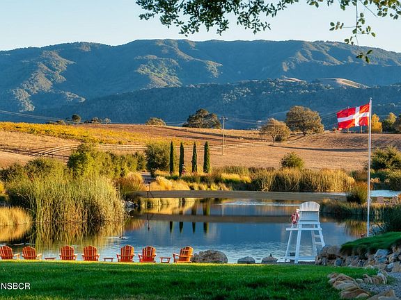 Dreams do come true! Located in the heart of the Santa Ynez Valley and locally referred to as the ''Duck Club''. This custom luxury estate is a hidden gem adjacent to lovely vineyards Brave & Maiden and Sunstone. A 6,500+/- square foot custom designed modern masterpiece combines the ultimate in entertaining nirvana with the unique privacy of very well-planned individual spaces. Exquisite features include a 5-bedroom, 6.5 bath, with a new modern chefs' kitchen that includes a unique separate area for the family pets to dine. Truly one of a kind, unique 26 acre parcel of gently rolling terrain with all usable land, solar power, and a private water source. This estate boasts an unbelievable 2 acre private lake with beach, equipped for swimming, fishing, and other recreational activities. There is also a rockstar party barn, sport courts, and a fully furnished airstream with hot tub that can sleep additional guests. Exceptional floor to ceiling walls of glass draw your focus to the sweeping views and verandas providing the ultimate experience of tranquility and relaxation. Welcome Home! Ask to see the video! Completely New and turnkey. Pack your bags for we will supply the keys.