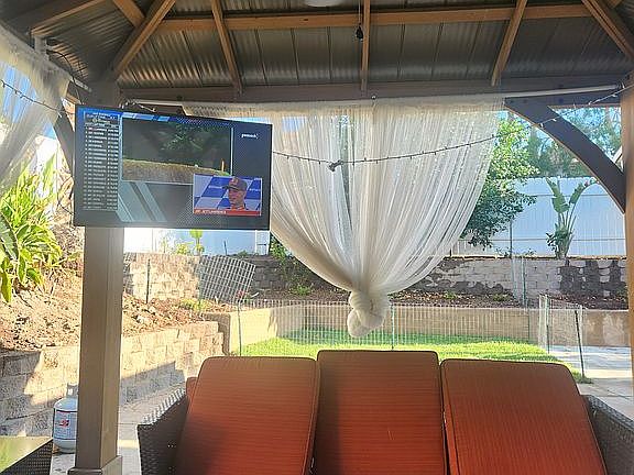 GORGEOUS oasis backyard with gazebo and built in BBQ (hooked up to natural gas line). Gazebo was installed professionally and has outlets installed for lights and TV. Built in BBQ with kegerator perfectly placed next to the pool. MATURE landscaping with 11 palm trees and 3 fruit trees.