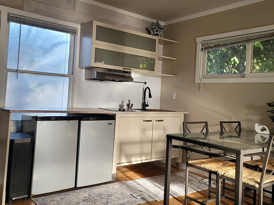 Charming Furnished Studio in Quiet Camarillo Neighborhood All Utilities Included In-Unit Apt Laundry Pet Friendly Private Patio Ideal for professionals, traveling nurses or students. Enjoy a private, fully furnished studio located behind a charming 1940s bungalow in a safe, friendly neighborhood. Perfect for one or two people, this thoughtfully remodeled space blends cozy charm with modern upgrades. This smart design creates distinct living, dining, and sleeping areas offering the comfort of a full home in a beautifully efficient space. Highlights All utilities included (water, trash, gas, electricity) Pet-friendly environment Private entrance with small yard and deck Off-street parking available Pricing and Availability Move-In Ready October 15 $1,895/month | Deposit: 1.5x rent - $2845 | 1-year lease Additional $40/month for a second occupant Interior Features Open layout feels spacious and balanced Bamboo floors and bright natural light Custom built-in closet with deep storage and drawers Fully remodeled bathroom with new vanity and glass shower and built in shower storage In-unit washer and dryer Modern kitchenette with sleek cabinets, ample countertop space and workstation sink with integrated cutting boards, drying rack and colander - maximizes counter space and makes meal prep and cleanup effortless. Appliances: Two French-door apartment fridges; 2-burner induction cooktop, Microwave and/or convection toaster oven Located in the heart of Camarillo walking distance to Old Town, YMCA, and Metrolink station. Convenient freeway access and scenic back roads through farmland connect you to CSUCI, Malibu, Oxnard, and Port Hueneme. Steps away from local favorites like Ragamuffin Roasters, Beacon Coffee, Custom Crush Winery and Institution Ale for fresh, local flavors. Rental Requirements Proof of income (last 2 mo.), prior landlord references, and credit report/background check No indoor smoking No previous evictions 1 year lease. $1895/mo inclusive of utilities. Internet not included. Deposit 1.5 x rent. $2845.