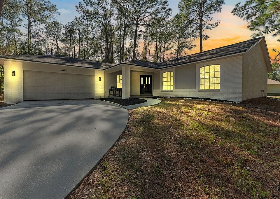 Modern Ranch on a Full Acre in Quail Hollow Pines, Fully Renovated and Move-In Ready. A rare blend of style, space, and serenity, this fully renovated ranch-style home sits on a private 1.01-acre lot in the sought-after Quail Hollow Pines community of Wesley Chapel. Every inch of this 3-bedroom, 2-bath home has been thoughtfully updated, offering a clean modern aesthetic while preserving the relaxed charm of country living. Step inside to discover a bright, open-concept layout filled with natural light and high-end finishes. The brand-new LVP flooring flows seamlessly throughout, complementing soft neutral paint tones and crisp white trim. The heart of the home, a stunning chef’s kitchen, features shaker-style soft-close cabinetry, sparkling quartz countertops, a farmhouse apron sink, and a complete suite of brand-new stainless-steel appliances. A large center island with seating makes it the perfect space for cooking, conversation, and entertaining. The spacious living and dining areas create an effortless flow for gatherings, anchored by contemporary lighting and large windows that frame views of the expansive property. Both bathrooms have been fully remodeled, showcasing modern tilework, quartz vanities, sleek fixtures, and designer-inspired details that feel straight out of a magazine. Enjoy peace of mind with a brand-new roof, new lighting and hardware throughout, a newly installed carbon filter tank for superior water quality, and a brand-new hot water heater. Step outside to your own private retreat, a covered back patio complete with controllable lighting and ceiling fan, ideal for quiet evenings or weekend entertaining. The property offers endless potential to create your dream outdoor space, whether it’s adding a pool, detached garage, workshop, or even a guest house, all while maintaining the privacy and tranquility that comes with over an acre of land. Raised garden beds add a touch of charm and functionality, surrounded by lush greenery and open skies. Located in a peaceful no HOA and no CDD community, this property delivers privacy and freedom, all while being just minutes from Wesley Chapel’s best shopping, dining, and entertainment, including The Grove, KRATE, Tampa Premium Outlets, and The Shops at Wiregrass, with quick access to I-75 and SR-54 for an easy commute to Tampa. Future growth is also assured, with the upcoming construction of the Johns Hopkins All Children's Hospital planned for the corner of McKendree Road and the nearby freeway interchange, bringing world-class healthcare just minutes away. The entire surrounding area is seeing major infrastructure improvements that will further enhance accessibility and long-term desirability. This property is a perfect combination of modern comfort, land, and location, a rare opportunity to own a turnkey home on an acre in one of Wesley Chapel’s most desirable areas. Schedule your private showing today and experience the charm of Quail Hollow Pines for yourself.