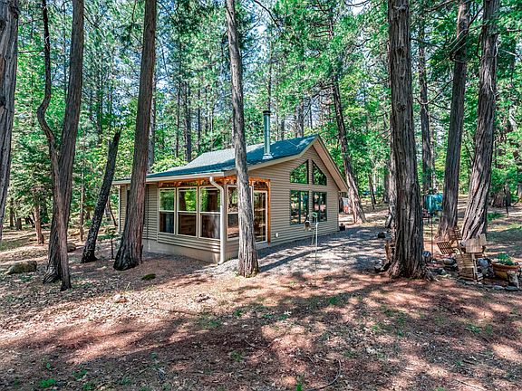 Extremely well maintained home tucked away from the hustle & bustle on approximately 4.5 acres offering privacy and serenity. This custom 2 bed 2 bath home was built with high efficiency in mind. Beautiful hardwood flooring, a great kitchen, & a bonus room for an office, dining, or exercise room. Offering covered RV parking, a detached garage, & located in the pines above the valley heat.