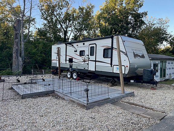 Welcome to Lot 891 within the gated community of Woodsmoke Ranch! The price listed is for the lot only, which offers a maintenance-free setup with no grass to mow, a spacious deck, and a paved driveway for convenience. This Category 5 lot has yearly dues of $2,656.15, which include water, electric, garbage, and full use of the park's amenities. Ideally located near Pool 2, the lot also comes equipped with 50-amp electric service. The current travel trailer on site will be removed, or you may choose to purchase it for an additional $19,900 for a package price of $39,900. The trailer is a 2015 KZ Sportsman S301BH, measuring 31 feet with a super slide, a front bedroom, and a 2-bed bunk area-perfect for comfortable camper living. Whether you're looking for a lot to bring your own RV or a ready-to-go package, this property is a great opportunity to enjoy everything Woodsmoke Ranch has to offer. Woodsmoke Ranch amenities: 2 pools, 2 stocked fishing ponds, 3 pavilions, basketball courts, sand volleyball, gaga ball, bags, 2 playgrounds, RC car racetrack, baseball field, laundromat, convenience store, cafe, horse stables (for rent), adult lounge, Mygrain Saloon, events planned year long and so much more. RV campground community, cannot be a primary residence. Gated community; showings by appointment only. No access without an appointment.