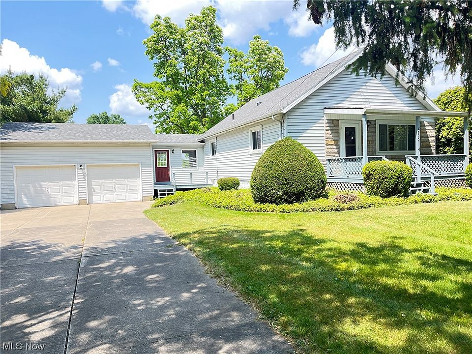 Welcome home to 2795 Old Forge Road. Don't miss this cozy bungalow sitting on 1.42 acres of beautiful countryside. Nestled between farm land, the property is minutes to I-76, State Route 224, and Kent State University. The house boasts first floor living that includes a large living room with 2 large picture windows and a fireplace that contains vent free gas logs, a kitchen/dinette area, 2 bedrooms, and a 4 season room where you can enjoy your morning coffee all year long. Hardwood Floors are hidden below carpet in the main living area. The 4 season room connects the 2-car garage (23 x 23) that includes a rear garage door and a wide concrete driveway that extends to the road. There is an additional 2 car garage (20 x 24) for your treasured toys that has concrete flooring and sits behind the home. There is an additional storage area attached to the garage (18 x 12) for your lawn equipment. Your laundry area is on the lower level that is equipped with Glass Block windows throughou