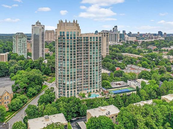 Sophisticated Buckhead living with unmatched views in this 2 bedroom 2.5 bath. Perched high above Peachtree Road, this beautifully updated 18th floor residence blends modern elegance with everyday comfort. Renovated kitchen with beautiful cabinetry and appointments, signature designer lighting, built in cabinetry, built in storage in every room. All this sets a warm yet refined tone throughout. Step onto your private balcony and take in sweeping city views. Breathtaking sunsets and the sparkling lights of Buckhead at night. This unit has a storage unit and 2 premier parking spaces. The buildings exceptional amenities include a fully equipped fitness center, lighted pickle ball and tennis courts, grilling, outdoor fireplace, dog park, library, club room with catering kitchen, 24 hour concierge service, 3 guest suites, heated pool. Conveniently situated near the shops of Buckhead, high end restaurants, and parks.