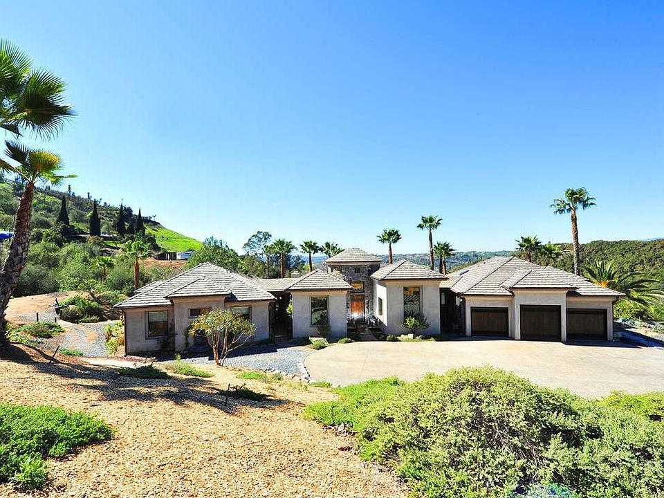 WIND UP THE HILL TO THIS IMPRESSIVE CASTLE! COMFORTABLE 4 BED. HOME ON OVER 2 BEAUTIFULLY MANICURED ACRES. THE LIST OF AMENITIES IS UNMATCHED AND SHOULD BE VIEWED ON THE SUPPLEMENT TO THIS LISTING. GUEST HOME IS COMPLETELY CONTAINED.. 10 TO 16 FT CEILING HEIGHTS, HOT TUB WITH SEE THROUGH FIREPLACE, WALK IN WINE CELLAR.,,THIS HOME OFFERS 4 PRIVATE COURTYARDS ALL WITH FOUNTAINS..BUILT IN BBQ COVERED PATIO WITH SUNSCREEN..THE PROPERTY IS FULLY IRRIGATED WITH TIMERS AND LIGHTING, 2 GATED ENTRYS