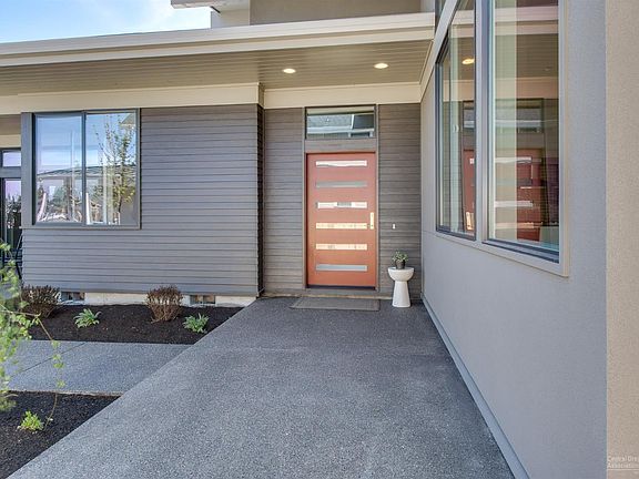 Striking single-level Mid-Century Modern home by KD Construction Services features large window areas that brighten the interior. Island kitchen anchors L-shaped great room that opens to a large rear patio. Spacious master suite opens to front patio; bath has soaking tub, shower enclosure, dual sinks. Both guest BRs have en suite baths as well. Den/office opens to hallway. Side driveway leads to two-car garage and turning area at rear of 7,457-sq ft lot. Contemporary decor with stunning designer finishes.