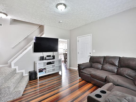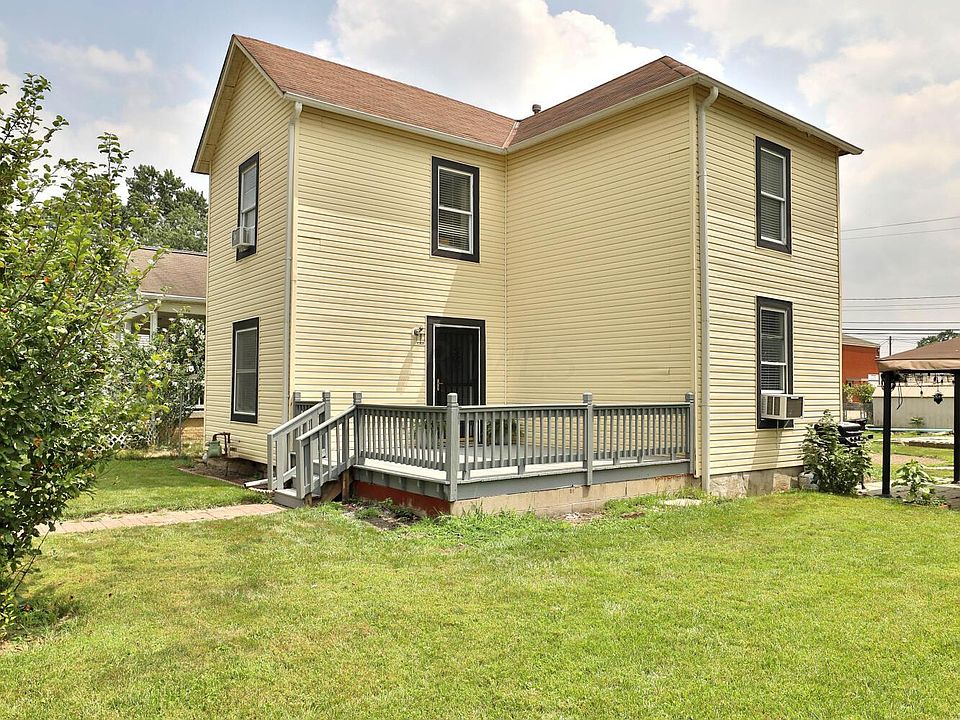 Great features on tidy home with RARE private fully fenced DOUBLE lot! Welcoming porch deck is freshly painted and HUGE yard is ready for relaxing, gardening, and entertaining. Very well maintained home, clean and bright! Fresh neutral paint throughout and new plush carpet upstairs. Large kitchen with eating area to gather and three good sized bedrooms. 1st Floor laundry. Off street parking in the rear, and plenty of room to build your own garage or onsite storage - VERY unique opportunity with space to build! Vinyl siding; storage shed onsite. Located a convenient drive from Easton, Ohio State East, Downtown, and more. Welcome home! Showings begin Friday 7/21 at 5pm.