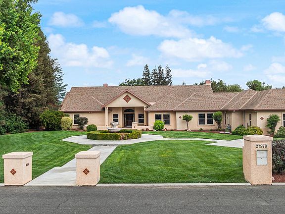 Stunning ranch home on 1.5 acres in Apricot Acres with 4-car plus workshop!! Many upgrades include 2 HVAC units, 3 fireplaces with gas lighters, new Culligan whole house water softener, newer painting, 2 WH's, central vac, newer remodeled kitchen features quartz counters, tile backsplash, stainless appliances, 7-burner commercial grade gas stove, SS fridge stays, island with breakfast bar & wood-tile floor, French doors off nook to byard, LR with fireplace, formal DR, large FR with recessed lighting, primary BR has engin. wood flooring, FP, plantation shutters, French doors to byard, remodeled bath includes newer quartz counters, painted cab's, newer sinks & faucets, 2 walk-in closets, walk-in shower with floor-to-ceiling 12x24 tile, hallway has 100 sf pantry, laundry has sink, W&D stay & tile floor, finished & painted 2-car has insulated door, epoxy floor, storage cab's & black fridge & very convenient half bath, breezeway with remote gates to 2nd 2-car garage with attic storage & wine fridge, attached 450 sf workshop, 2 workbenches, cabinets & sink, front has relaxing courtyard & extra off street parking, huge backyard features putting green with 2 teeing areas, 3 storage sheds, fruit trees, big patio with 3 covers and built-in gas BBQ. Come see this exceptional property!!